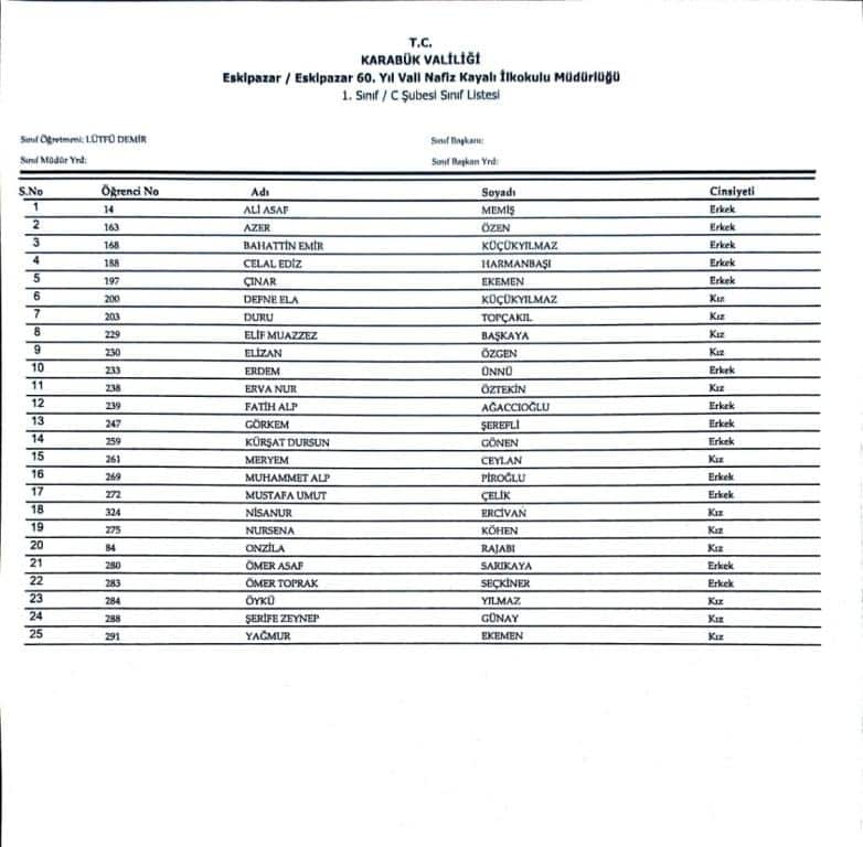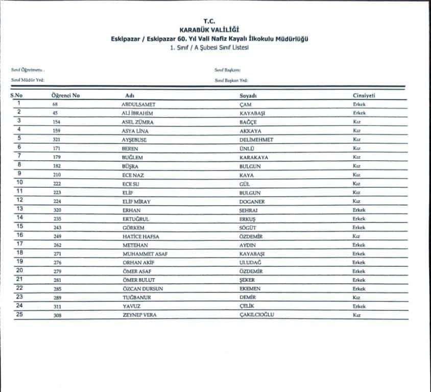 1.sınıf öğrencilerimizin şube belirleme kurası sonuçları Bakanlığımız tarafından e okul sistemi üzerinden otamatik olarak belirlenmiştir.