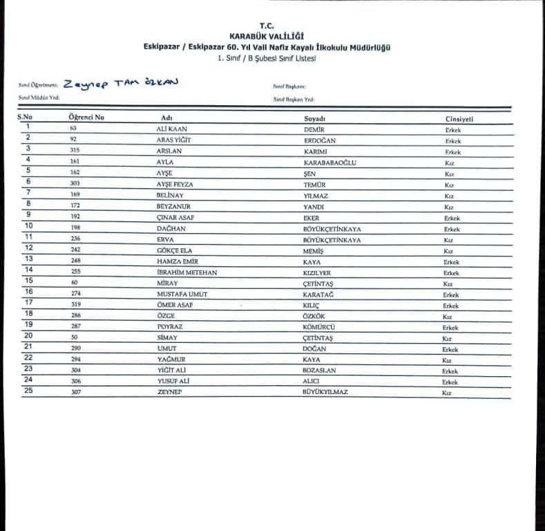 1.sınıf öğrencilerimizin şube belirleme kurası sonuçları Bakanlığımız tarafından e okul sistemi üzerinden otamatik olarak yapılmıştır. Sonuçlar bilginize sunulmuştur.