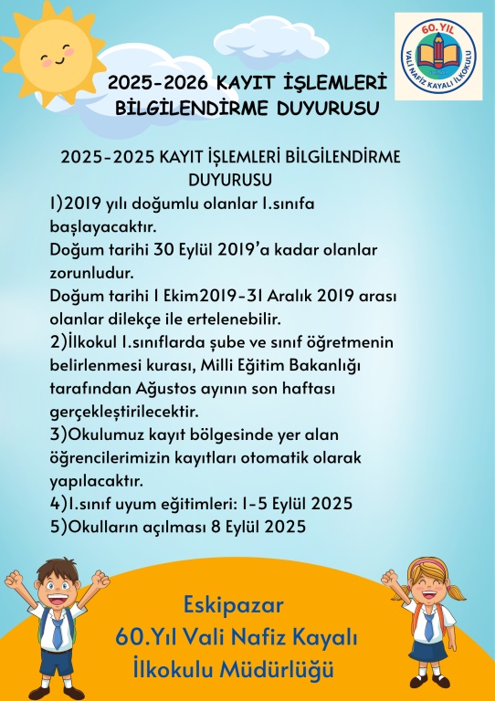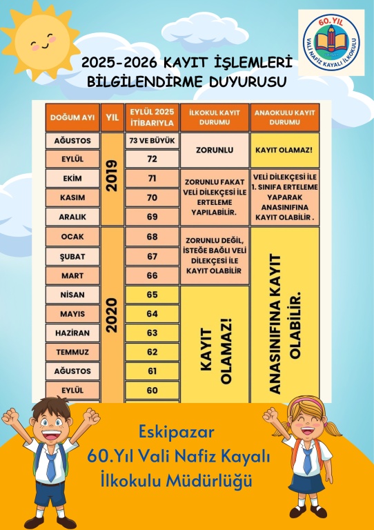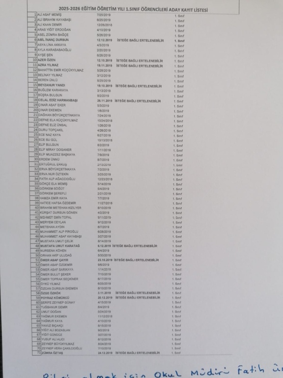 2025-2026 Eğitim öğretim yılı 1.sınıf aday kayıt öğrenci...